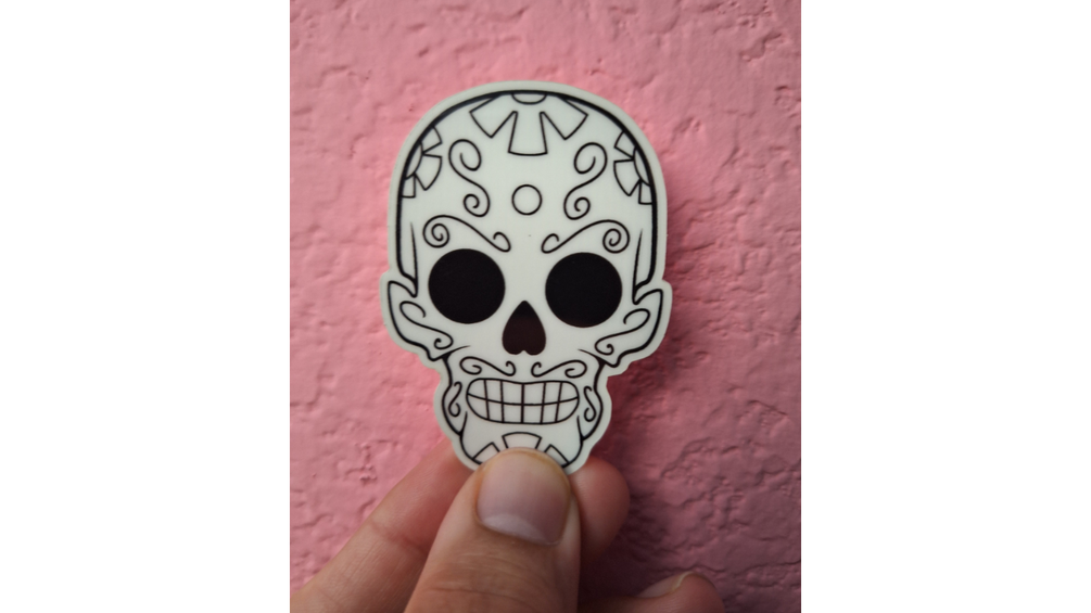 A glow-in-the-dark sticker. Do you like sugar skulls How about once that glow in the dark?
